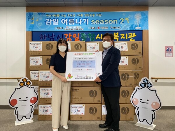 ‘감일 여름나기 season2’는 하남시가 추진하는 이웃돕기 캠페인 ‘하남 사랑愛나눔’ 후원금으로 진행되며 관내 주거냉방이 취약한 저소득 가구에 여름용품을 지원해 쾌적한 주거환경 조성과 폭염 대비 온열질환 예방에 그 목적을 두고 있다.
