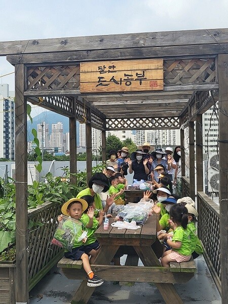 안양시 달안동 주민자치위원회가 지난 11일 달안동 행정복지센터 옥상 텃밭에 관내 어린이집 원아 20여명을 초청해 ‘텃밭 현장 체험’을 실시했다.