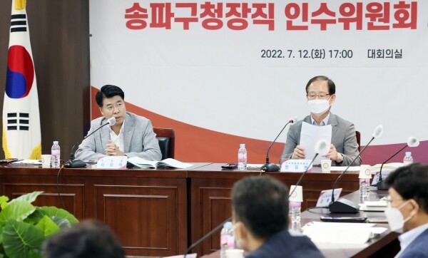 송파구청장직 인수위원회는 12일 구청 대회의실에서 10일간의 인수위원회 활동을 마무리하는 업무보고회를 열고 공약사항, 예산, 조직개편에 대해 심도 있는 논의를 갖고 불요불급한 예산 111억여 원 삭감 등을 주요 골자로 하는 내용을 제안했다.