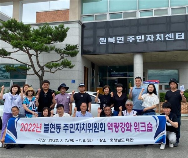 이번 워크숍은 태안군 원북면 주민자치센터를 견학해 원북면 주민자치회에서 운영하는 다양한 사업과 우수사례를 청취하는 한편 지역 우수 관광 명소를 방문하고 이를 시에 접목하는 방안을 연구하는 순서로 진행됐다. 또한, 불현동 주민자치위원 간 상호 소통 및 화합의 시간을 보내며 그간 코로나19로 교류가 없었던 위원들 간의 친목을 다지는 시간을 가졌다.