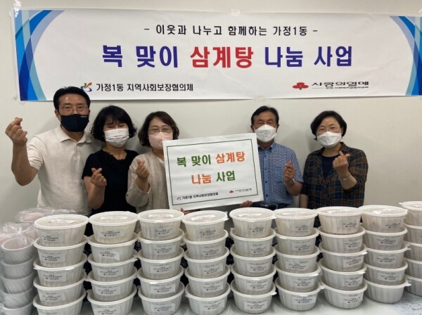 [뉴스써치] 인천 서구 가정1동 지역사회보장협의체가 12일 ‘복 맞이 삼계탕 나눔’ 행사를 열고 어르신 80분에게 삼계탕을 전달했다고 밝혔다.