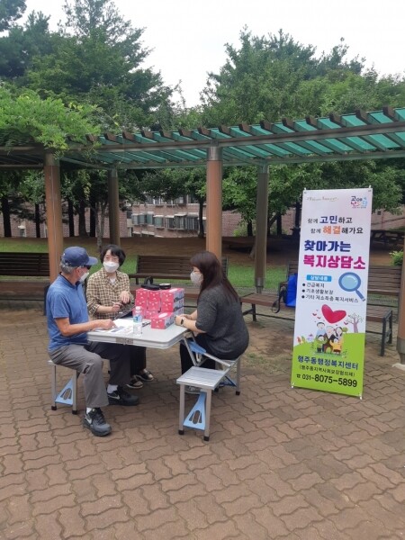 상담소를 찾은 한 어르신은 “산책을 하려고 지도공원에 왔는데 이렇게 행주동행정복지센터 직원과 직접 만나 상담하니 편하다”고 말했다.