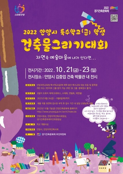 접수증 및 포스터는 안양시청 홈페이지(시정소식’새소식’‘2022 안양시 특수학교 학생 건축물 그리기 대회 참가신청 안내’)에서 확인할 수 있다.