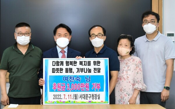 이번 성금은 기부자의 뜻에 따라 사회복지공동모금회를 거쳐 서대문구 내 어려운 주민들에게 전해질 예정이다.