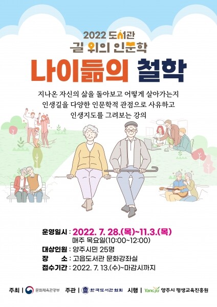 강수현 양주시장은 “양주시민들이 철학적 사유를 통해 행복한 나이 듦과 너른 사색의 웰라이프를 누리며 당당한 자신을 찾는 기회가 되기를 바란다”고 전했다.