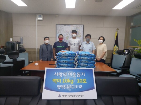 이 쌀은 지난달 3일~15일 열린 전국고등학생 축구대회에서 우승해 받은 상품이며 뜻깊은 곳에 쓰고자 하는 마음으로 진위면 행정복지센터에 전달하게 됐다.