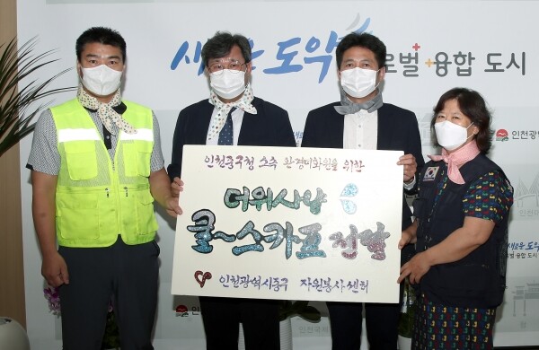 이날 전달된 쿨스카프는 냉동실에 얼려 목에 두르면 직사광선을 막아주고 몸의 열기를 식혀줘 환경미화원들의 건강을 지키고 업무 효율을 높이는데 큰 역할을 할 수 있을 것으로 기대된다.