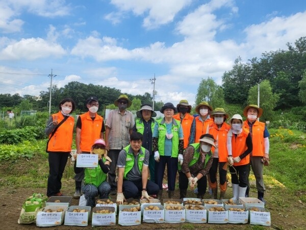 이날 봉사단 회원들은 감자 64kg을 수확하고 수확한 감자를 도움이 필요한 11가구 이웃 주민들에게 직접 전달했다.