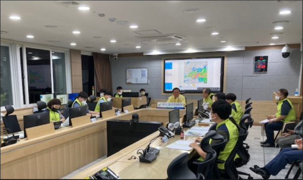 여주시는 13일 오후 6시 10분 호우경보에 대응하기 위해 비상2단계 체제를 가동하고 여주 부시장을 통제관으로 직원 56명의 비상근무에 돌입한 가운데 재해경보시스템 37개소, 시가지 관제 CCTV 227대를 활용한 침수지역 관리와 신속한 상황전파 관리를 강화했으며13일 여주시 평균 114.5mm로 수목전도 18건 피해가 접수되어 복구 중에 있으며 내일 날이 밝는데로 본격적인 피해현황 조사와 복구작업을 추진할 계획이라고 전했다