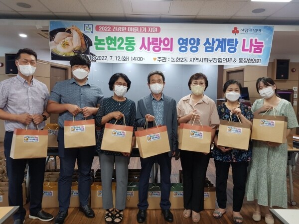 영양 키트는 삼계탕, 두유, 구운 달걀, 마스크로 구성됐으며 논현2동 지역사회보장협의체와 통장협의회 50여명이 홀몸 어르신, 장애인, 복지 사각지대 등에 전달했다.