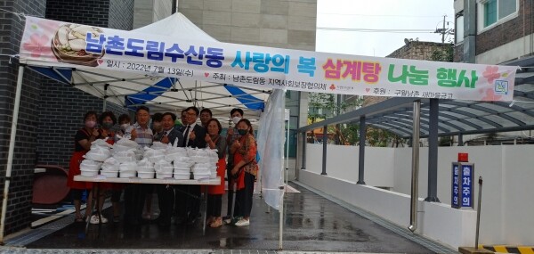 노정희 남촌도림동 지역사회보장협의체 위원장은 “지역사회의 지원과 각 단체 회원들의 협조로 행사가 무사히 진행될 수 있었다”며 “이른 무더위와 코로나에 지친 저소득 주민들의 건강 유지에 작은 도움이 되길 바란다”고 전했다.