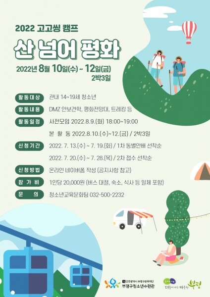 박건호 부평구 청소년수련관장은 “여름방학을 맞아 그동안 코로나19로 어려웠던 신체활동과 캠프활동을 진행해 청소년들이 즐겁고 새로운 경험을 하길 바란다”고 말했다.