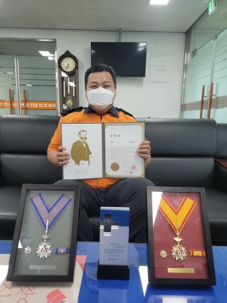 주인공은 2019년 용인소방서 119구급대원으로 임용된 장문용 소방사로 지난 6월 28일 헌혈 100회를 달성해 헌혈 유공장 ‘명예장’을 수여받았다.
