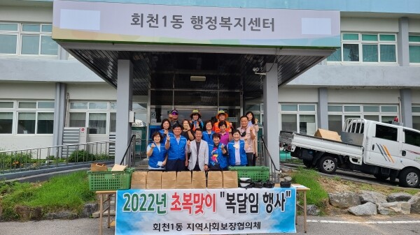 이주형 회천1동장은 “장마와 무더운 날씨에도 불구하고 어려운 이웃을 위한 ‘복달임’ 봉사로 어려운 이웃들이 행복하고 건강한 여름철을 보내는 데 큰 도움이 될 것이며 봉사해주신 지역사회보장협의체 위원님들께 감사드린다”고 전했다.
