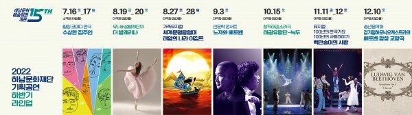 7월 연극 ‘수상한 집주인’을 포함해, 8월 유니버설발레단의 ‘더 발레리나’, 가족뮤지컬 ‘세계문명탐험대-태양의 나라 이집트’, 9월 인문학콘서트 ‘노자와 베토벤’, 10월 전통연희극 ‘대단한 놀이판:오늘의 광대’, 태권소리극 ‘태권유랑단-녹두’등 6편이다.