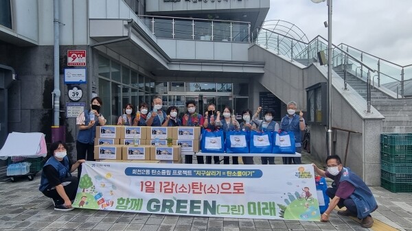 또한 회천2동만의 특별한 탄소중립 이행확산을 위해 돌봄 사각지대 어르신들의 마음을 향기로 가득 채울 수 있도록 재활용품을 활용한 아이스팩 방향제 600여개를 마을그린리더와 직접 제작해 어르신들께 나눠드렸으며 반려식물 100여개 또한 어르신들에게 우울감을 풀어드리는 반려물건으로 전달하는 등 이웃돌봄 사업으로 확대했다.