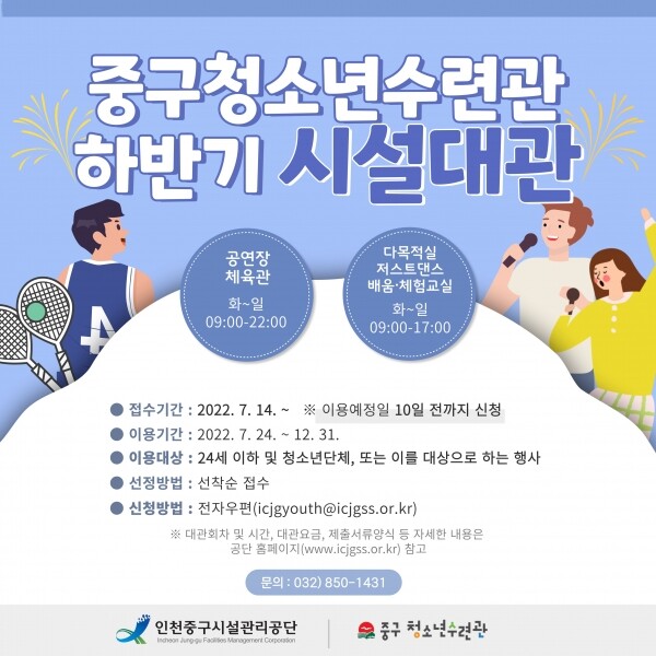 한편 청소년수련관 관계자는“지역 청소년과 청소년단체의 많은 관심과 신청을 바라며 신청 시 대상과 목적, 제출서류 등 유의사항을 꼭 확인해 주시기를 당부드린다”고 전했다.