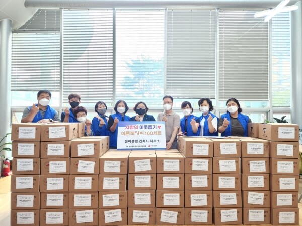 협의체 윤태복 위원장은 “어려운 이웃의 건강한 여름나기를 위해 선뜻 후원금을 기부해준 젬마종합건축사사무소에 감사하다”는 뜻을 전했으며 젬마종합건축사사무소의 이근순 대표는 “기부한 금액이 의미 있는 사업에 쓰이게 되어 오히려 감사하다”는 인사를 전해 훈훈함을 남겼다.