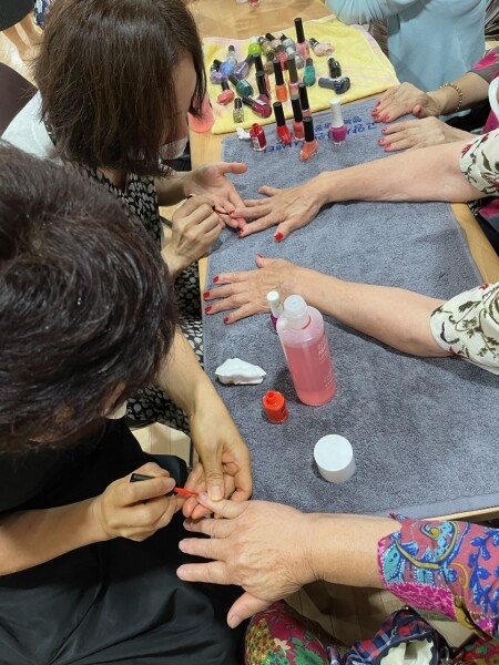 이날은 거센 비가 내리는 궂은 날씨 속에서도 단지 내 체력단련실에 20여명이 넘는 어르신이 방문해 염색, 헤어 커트, 매니큐어, 발톱 정리 등의 서비스를 받았다.