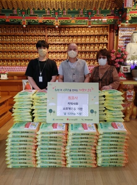 원효사는 북부희망케어센터를 통해 정기적으로 어려운 이웃을 위한 쌀을 전달해 지역사회에 도움을 주고 있으며 이번 기부는 소외계층을 위해 원효사 신도분들이 십시일반 모아 마련된 것으로 그 나눔의 의미를 더했다.