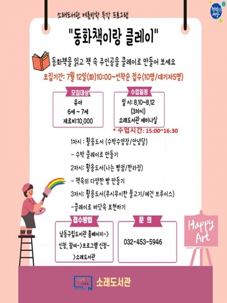 소래도서관 관계자는 “지역 아이들이 소래도서관 여름방학 특강 프로그램과 즐겁고 신나는 여름방학 보내길 바란다”고 말했다.