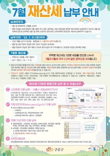 구로구는 구청 홈페이지, 소식지 등을 통해 7월 재산세 납부에 대해 안내하고 있다.