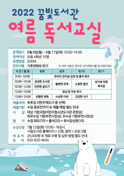 여름독서교실 참가자 중 우수 학생에게는 국립어린이청소년도서관장상과 부천시장상이 수여될 예정이다.