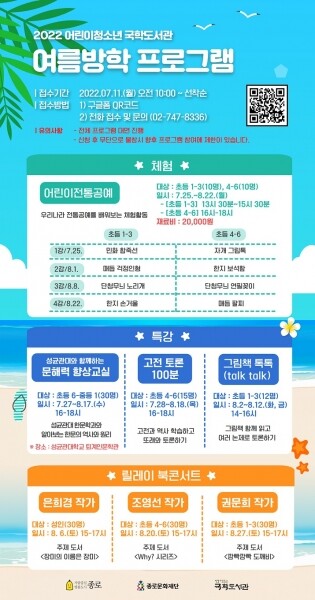 어린이청소년 국학도서관에서 7월 25일부터 8월 27일까지 열리는 ‘2022 여름방학 프로그램’이다.