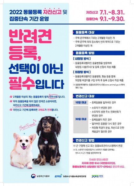 시는 동물등록 자진신고 기간 이후 9월 1일부터 공원, 산책로 등 반려견이 자주 이용하는 장소를 중심으로 동물등록 여부 및 반려동물 안전조치 집중 단속에 나설 예정이다.