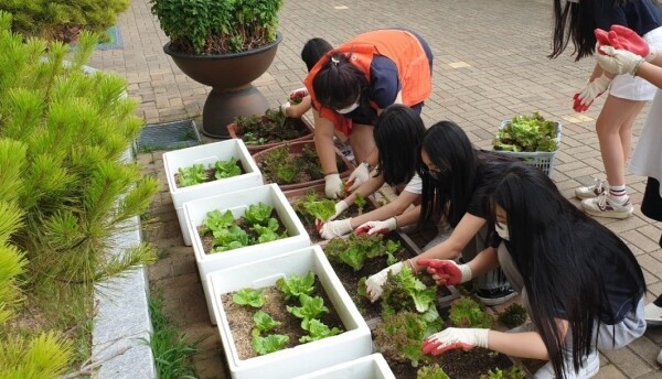 당초 계획대로 텃밭에 상추, 감자, 방울토마토를 재배를 결정해 직접 씨앗을 뿌리고 모종을 심고 중간 과정을 지켜보며 학생들이 호기심을 키우고 애정을 쏟으며 재배를 완료했으며 재배한 농작물은 저소득 어르신 10가구에 전달할 예정이다.