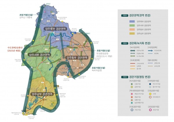 경관계획은 ‘경관법’에 의한 법정 계획으로 양주시의 종합적인 경관관리체계를 구축하고 품격 있는 도시브랜드를 구축할 목적으로 지난 2017년 12월 수립 이후 양주시 전 지역을 대상으로 시행되고 있다.