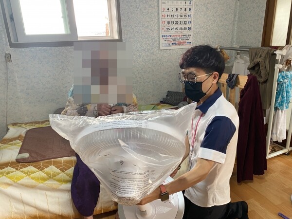 가정방문을 통해 일상생활에 곤란함이나 어려움은 없는 것으로 파악하였지만 향후 위기 상황이나 어려움 발생 시 행정복지센터로 연락할 것을 안내했고 복지욕구로 호소한 이웃돕기 물품으로 선풍기를 전달했다.