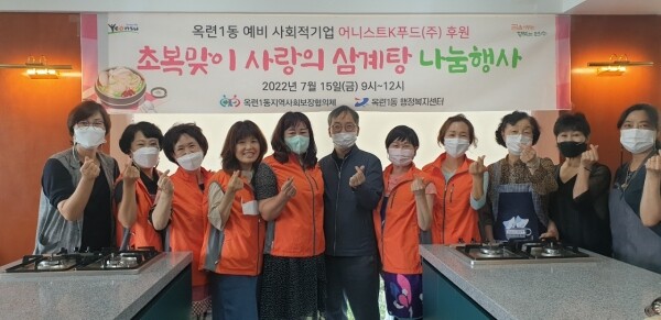 옥련1동 지역사회보장협의체는 초복을 맞이해 옥련1동 저소득 독거·노인 30가구에 삼계탕을 전달하는 ‘사랑의 삼계탕 나눔행사’를 개최했다.