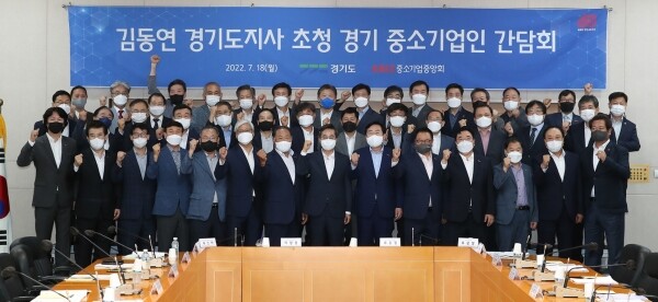 이날 중소기업인들은 김 지사에게 ‘경기도 중소기업협동조합 활성화 지원’, ‘경기북부 접경지 내 산업단지 규제 개선’, ‘경기도 중소 유통 공동도매 물류센터 활성화 및 건립지원’ 등 8가지 사항을 건의했다.