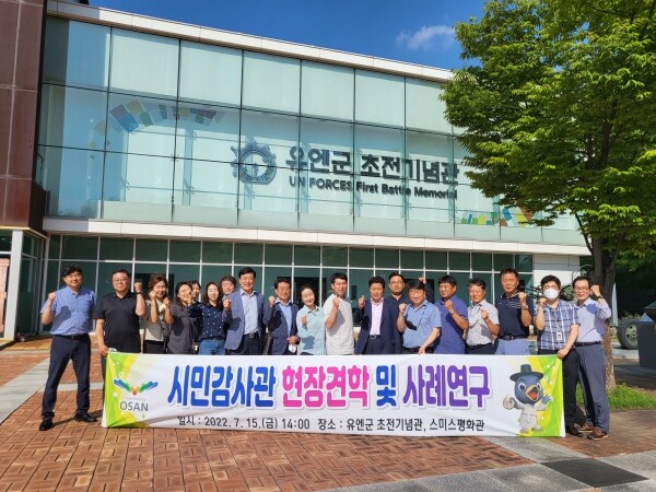이날 시정 현장 견학은 평화 나누미 해설사의 안내에 따라 유엔군 초전 기념관 및 스미스 평화관 등의 시설 견학을 진행했으며 현장 견학 후에는 분임 별 사례연구 활동을 통해 의견을 개진했다.