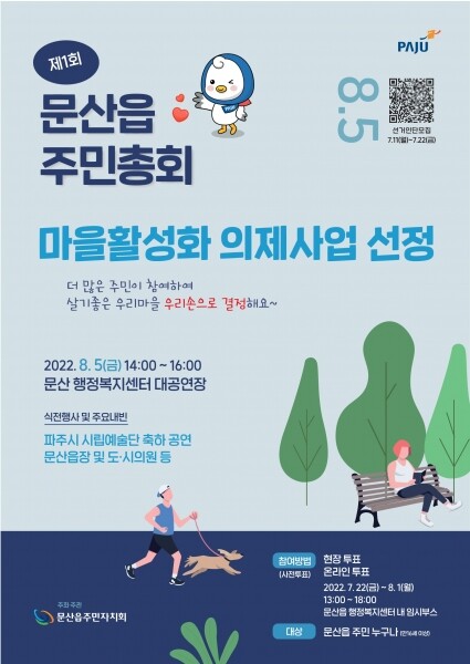특히 문산읍 주민자치회는 상반기 발굴한 의제 사업에 대해 지난 11일부터 온·오프라인 방식의 주민 투표를 진행하고 있으며 8월 5일 주민총회를 통해 시행 여부를 결정하게 된다.