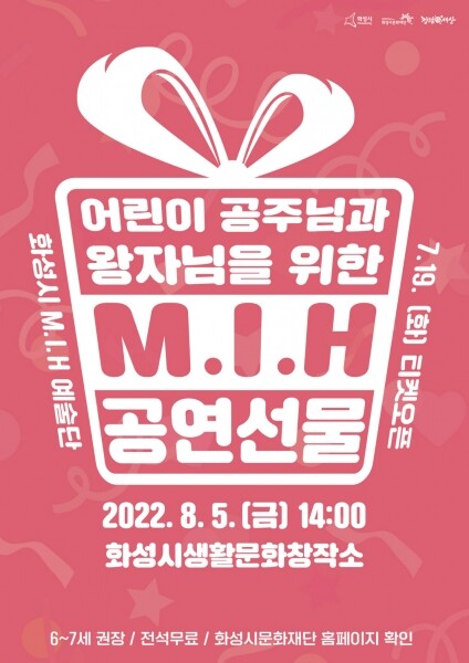첫 번째 ‘M.I.H 공연선물’은 ‘6~8세의 어린이 공주님과 왕자님을 위한 공연’으로 8월 5일 화성시 봉담읍에 위치한 생활문화창작소에서 개최한다.