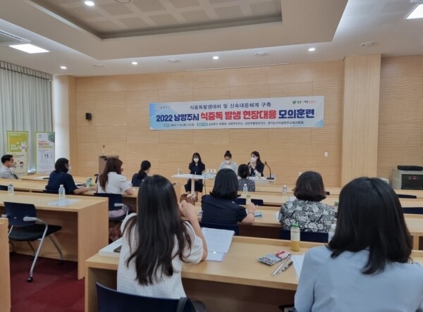 이날 모의 훈련은 남양주고등학교에서 급식을 먹은 학생이 복통과 설사를 일으키며 식중독 의심 증상을 보이는 상황을 가정해 집단 급식소에서 식중독이 발생할 경우를 대비한 현장 대응 훈련으로 진행됐다.