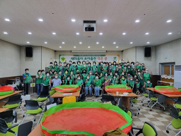 ‘새마을이 쏘아올린 작은 공’은 유용미생물을 활용한 발효액과 퇴비를 황토와 배합한 후 반죽해 만든 흙공을 하천에 던져 수질을 정화하고 악취를 제거하는 하천 정화 사업이다.