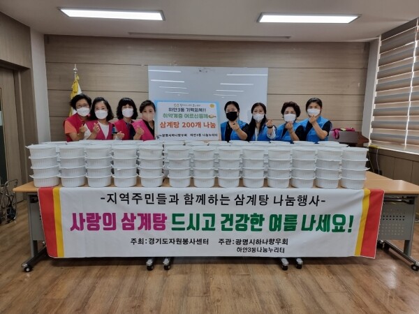 박정옥 광명시 하나향우회 회장은 “연일 이어지는 무더위에 지친 어려운 분들에게 기력을 보충할 수 있는 보양식을 대접할 수 있어 기쁘다”며 “정성껏 준비한 삼계탕 드시고 더욱 건강한 여름 보내시길 바란다”고 소감을 밝혔다.