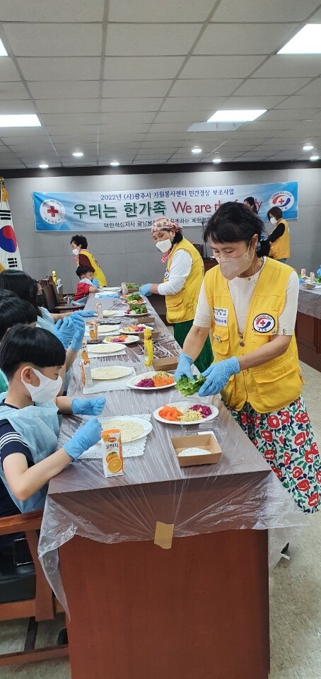 이날 행사는 취약계층 가정과 다문화가정 아동·청소년들에게 다양한 체험활동을 통해 정서적 안정과 건강한 학교생활을 할 수 있도록 하는 사업으로 대한적십자사 광남봉사회가 광주시 자원봉사센터로부터 2022년 우수프로그램 공모사업 지원을 받아 주최했으며 ‘또띠아 만들기’라는 소주제로 진행했다.