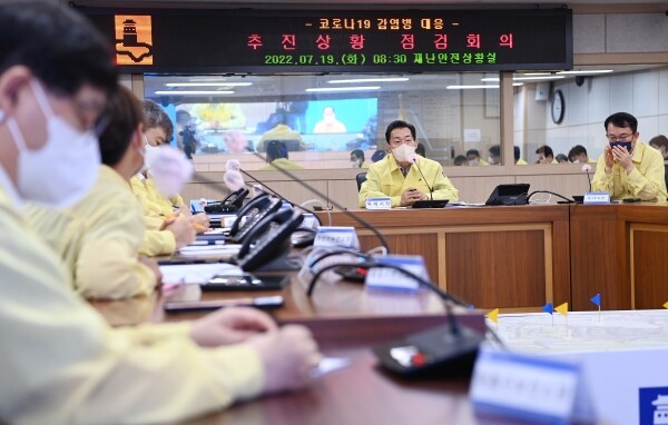19일 시청 재난 안전상황실에서 열린 ‘코로나19 감염병 대응 추진상황 점검회의’를 주재한 이재준 시장은 “코로나19 재유행에 선제적으로 대응책을 마련해야 한다”며 “현재 백신 4차 접종을 주저하는 시민이 많은데, 4차 접종의 필요성을 적극적으로 홍보하라”고 말했다.