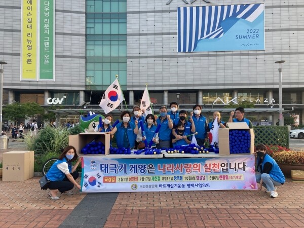 이날 행사에는 바르게살기운동 신평동위원회 회원 및 동 직원 등이 참여해 가정용 태극기와 올바른 게양방법, 관리요령, 국경일 국기게양의 당위성 등을 담은 홍보 전단지도 함께 전달했다.