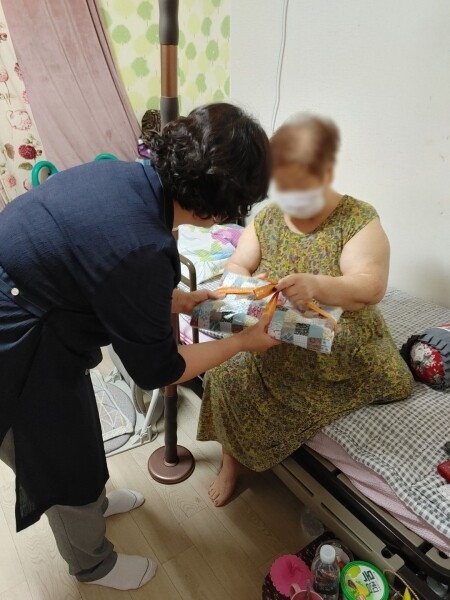 돌봄기관 생활지원사가 직접 어르신 가구를 방문하며 지원품을 전달했다.