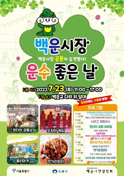 오언석 도봉구청장은 “즐거운 주말 시장 축제를 풍성하게 주최해주신 백운시장 상인회 여러분께 정말 감사드린다 앞으로도 백운시장이 오징어게임과 더불어 지역명소, 지역경제 중심지로 그 명맥을 이어갈 수 있도록 도봉구가 최선을 다해 돕겠다”고 말했다.