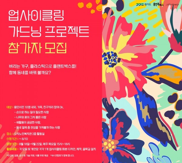 시 관계자는 “이 프로젝트는 시민 주도의 문화 역량 강화활동을 지원하기 위한 문화자치 활성화 사업의 일환으로 진행하는 것”이라며 “가족, 친구와 함께 자원 재활용과 문화 콘텐츠 창작활동으로 특별한 추억을 남기길 바란다”고 말했다.
