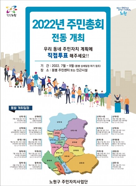 2022년 주민자치회 주민총회는 7. 7. 중계2,3동에서 시작해 9. 24. 하계1동을 마지막으로 진행된다.