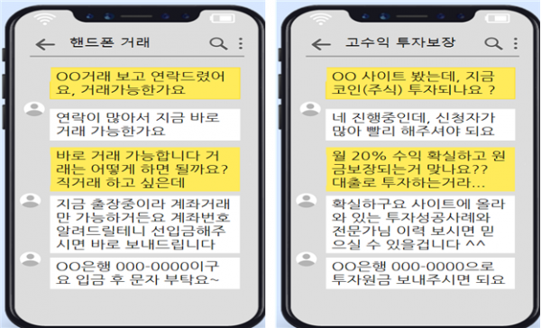 . “이를 위해 금전거래를 할 때는 반드시 상대방의 신원을 정확하게 확인해야 하고 가상자산, 주식 등에 투자하면 고수익을 보장한다거나 비대면 거래를 요구하면서 선입금을 유도하는 직거래 등은 하지 말아야 한다” 또한 “모르는 번호 또는 누리 소통망 아이디로 가족, 친구라고 말하며 개인정보·금융정보를 요구하거나 출처가 불분명한 어플리케이션 설치하도록 유도하는 것은 전형적인 메신저피싱 수법이므로 직접 전화를 하는 등 상대방의 신원을 정확하게 확인하기 전에는 상대방의 요구에 응하지 말아달라”고 당부했다.