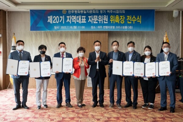 이날 위촉장을 받은 정병관 여주시의회 의장, 유필선 부의장, 박시선·경규명·박두형·진선화·이상숙 시의원은 대통령과 여주시민을 잇는 평화통일의 가교 역할에 충실히 임할 것을 약속했다.