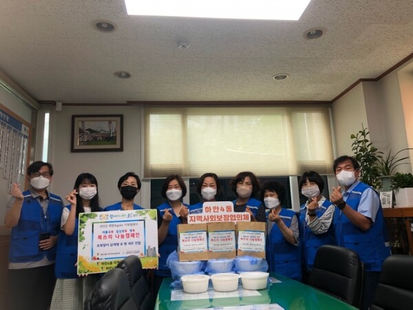 이날 지역사회보장협의체 위원들은 원기 회복에 좋은 삼계탕과 후식으로 드실 빵세트를 취약계층 독거어르신 20가구에 전달하며 이웃사랑을 실천했다.